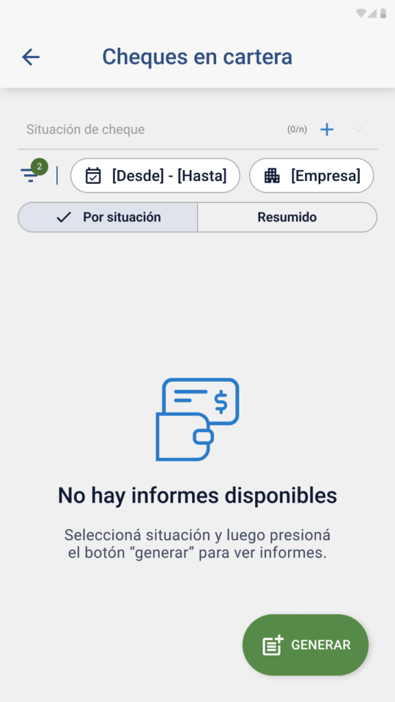 • Si no existen cheques bajo los criterios seleccionados, se muestra la imagen de empty state.