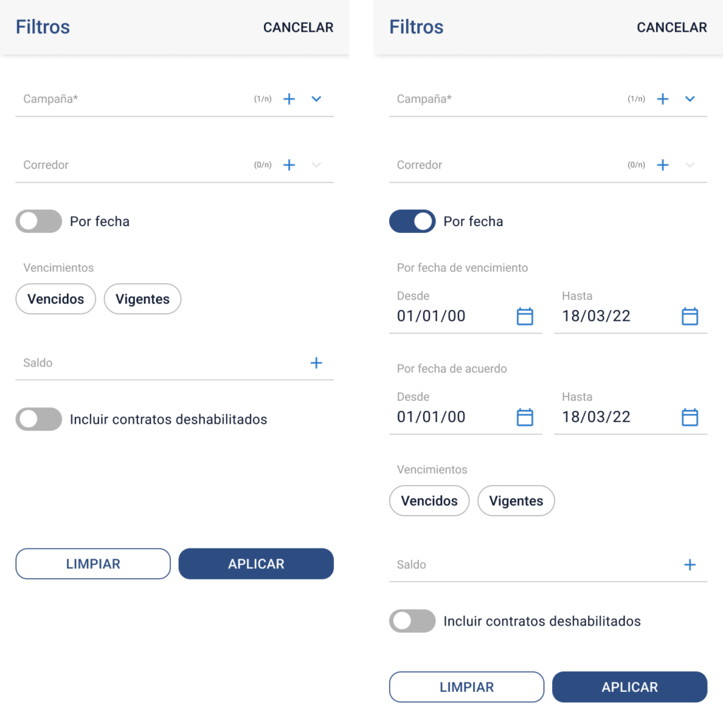 - Incluir contratos deshabilitados: Switch apagado por defecto.