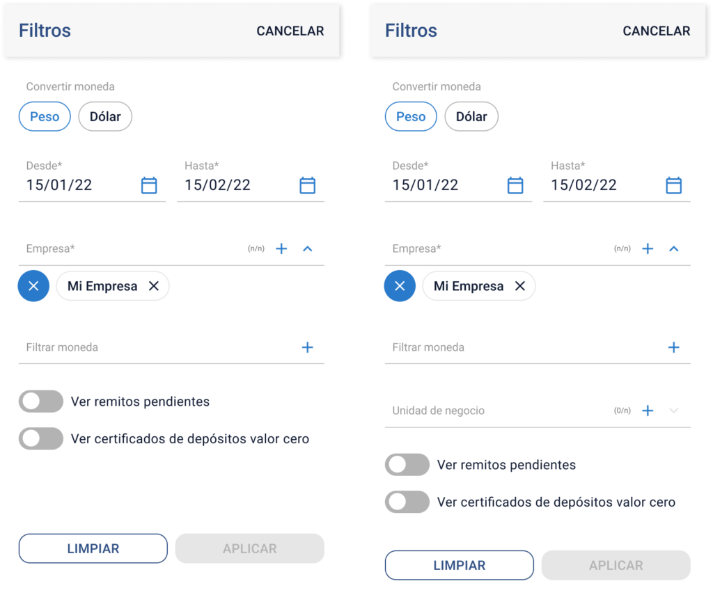 - No se puede abrir la pantalla de filtros sin seleccionar al menos un cliente.
